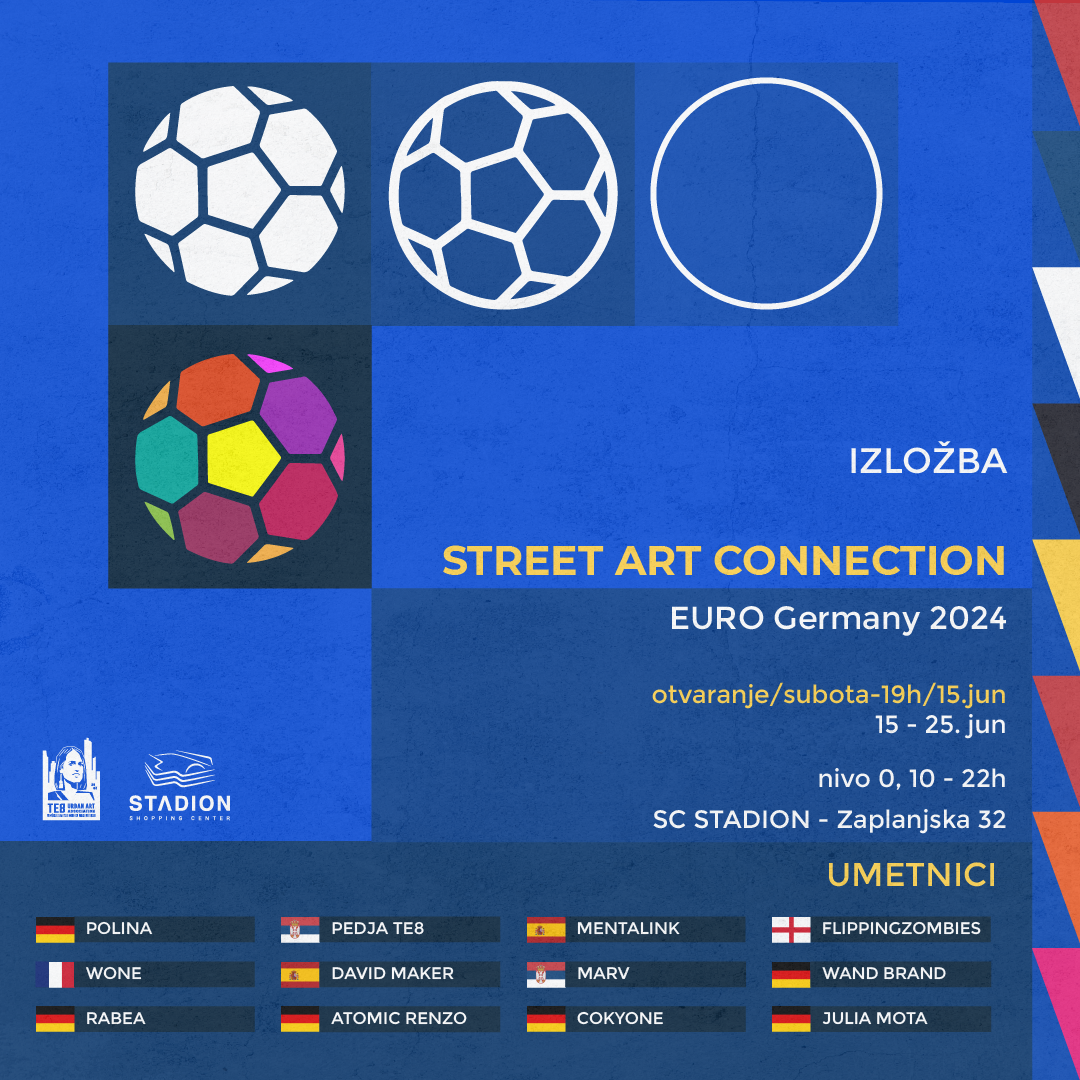 Pozivamo vas na međunarodnu izložbu “Street art connection EURO 2024 Germany” koja će se održati od 15. do 25. juna u šoping centru Stadion. ⚽️ Ovom prilikom moći ćete da vidite radove najistaknutijih domaćih i evropskih muralista koji su specijalno za ovu izložbu svoju umetnost iskazali na starim fudbalskim loptama. 🧑🏻‍🎨 Svečano otvaranje zakazano je za subotu 15. juna od 19 časova na nivou 0. ⏰
