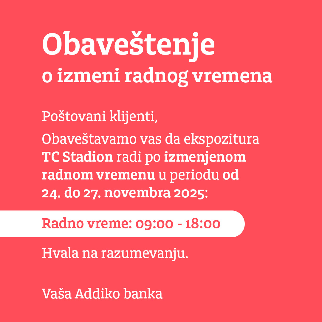 Izmenjeno radno vreme Addiko banke