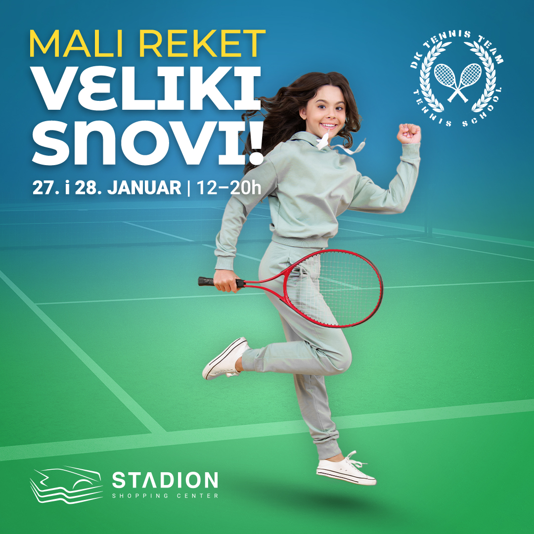 Uzbudljiv vikend posvećen tenisu je pred nama! U subotu 27. i nedelju 28. januara pozivamo vas da se družimo na jedinstvenom događaju „Mali reket, Veliki snovi”. Obećavamo da ćemo preplaviti šoping centar Stadion teniskom energijom, smehom i znanjem. Ovaj vikend nije samo prilika za igru već i za učenje, druženje i stvaranje nezaboravnih trenutaka.