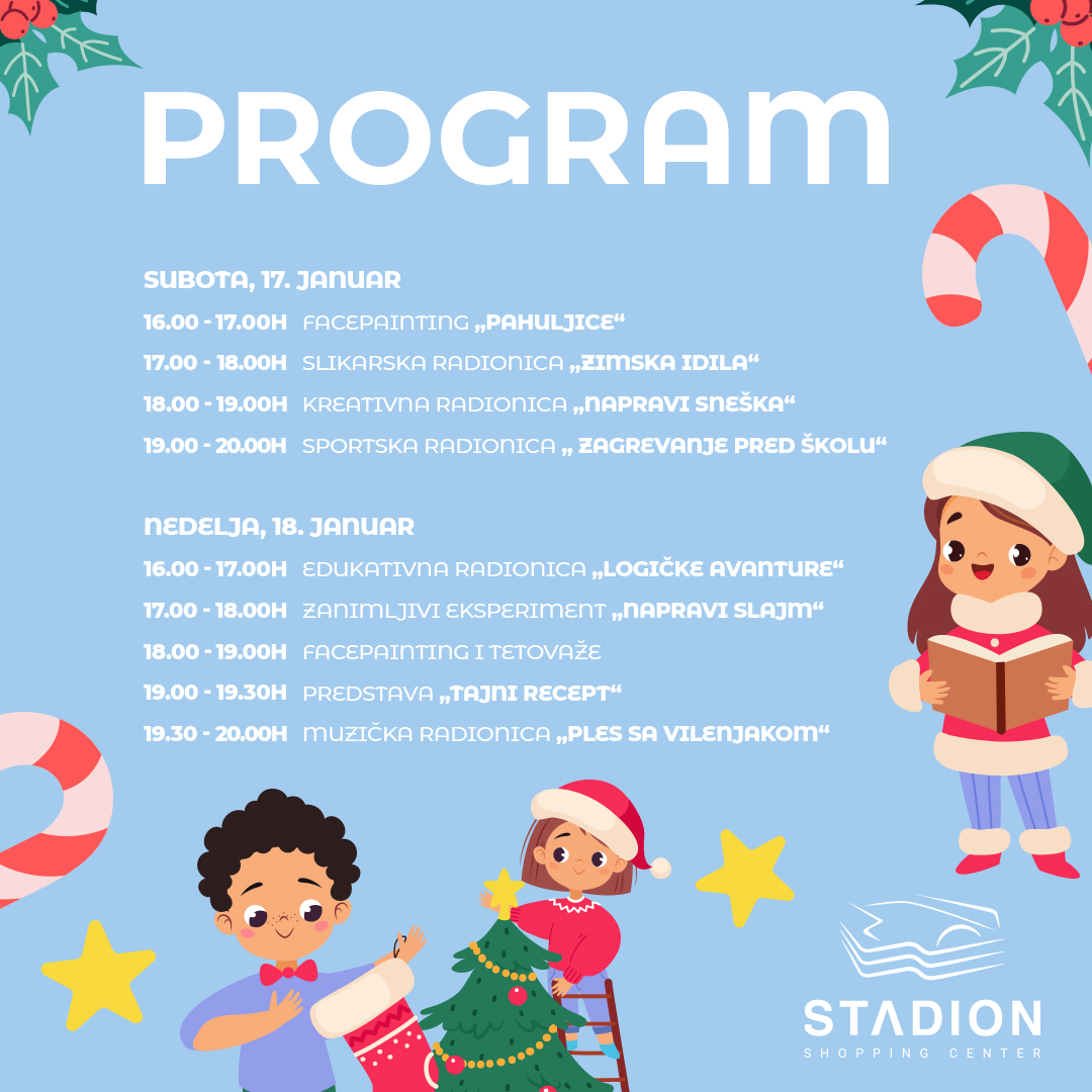 Šoping centar Stadion 17. i 18. januara poziva najmlađe i njihove porodice da zakorače u čarobni svet igre, kreativnosti i zabave kroz pažljivo osmišljen zimski program.