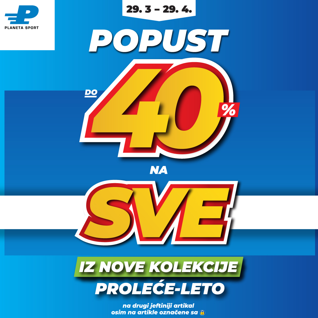 Samo u u Planeta Sport prodavnici te očekuje do 40% popusta na kompletnu novu kolekciju proleće/leto, na drugi jeftiniji artikal!🤩