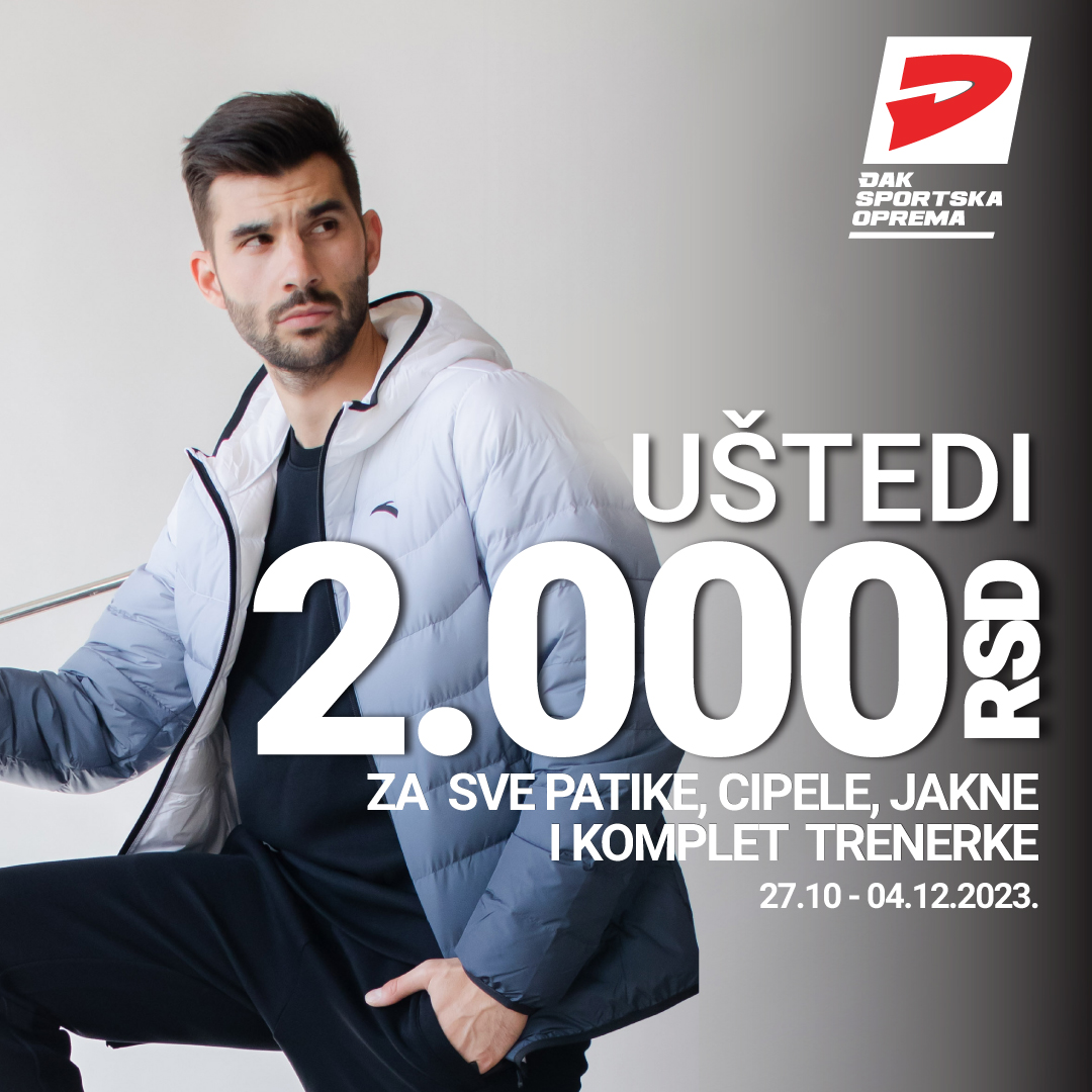 Požuri u Đak, kupi i uštedi! Iskoristi poklon popust od 2000 rsd. za kupovinu SVIH patika, cipela, komplet trenerki i jakni.