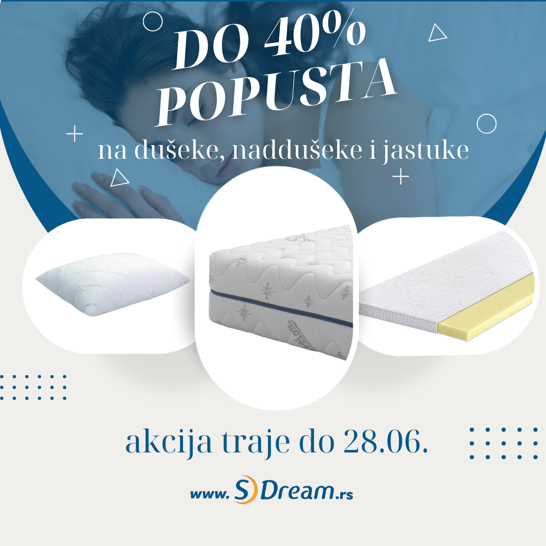 Iskoristite sniženje na veliki deo asortimana koji obuhvata dušeke, naddušeke i jastuke ✨