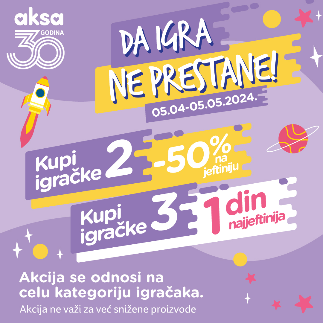 🏸 U toku je akcija “Da igra ne prestane” na igračke koja traje sve do 5. maja!