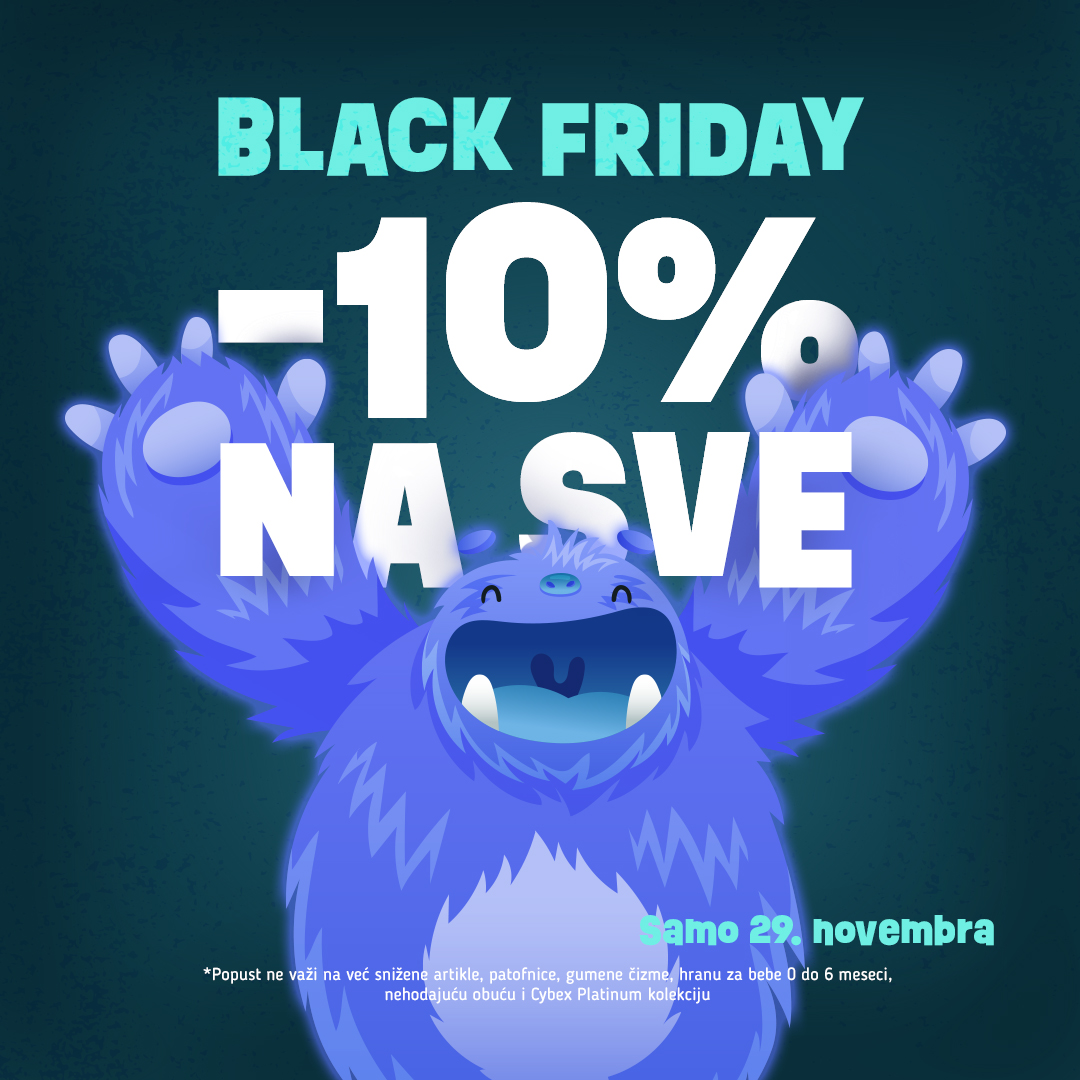 *popust se ne primenjuje na već snižene artikle, patofne, gumene čizme, nehodajući obuću, hranu za bebe od 0-6 meseci i Cybex Platinum kolekciju.
