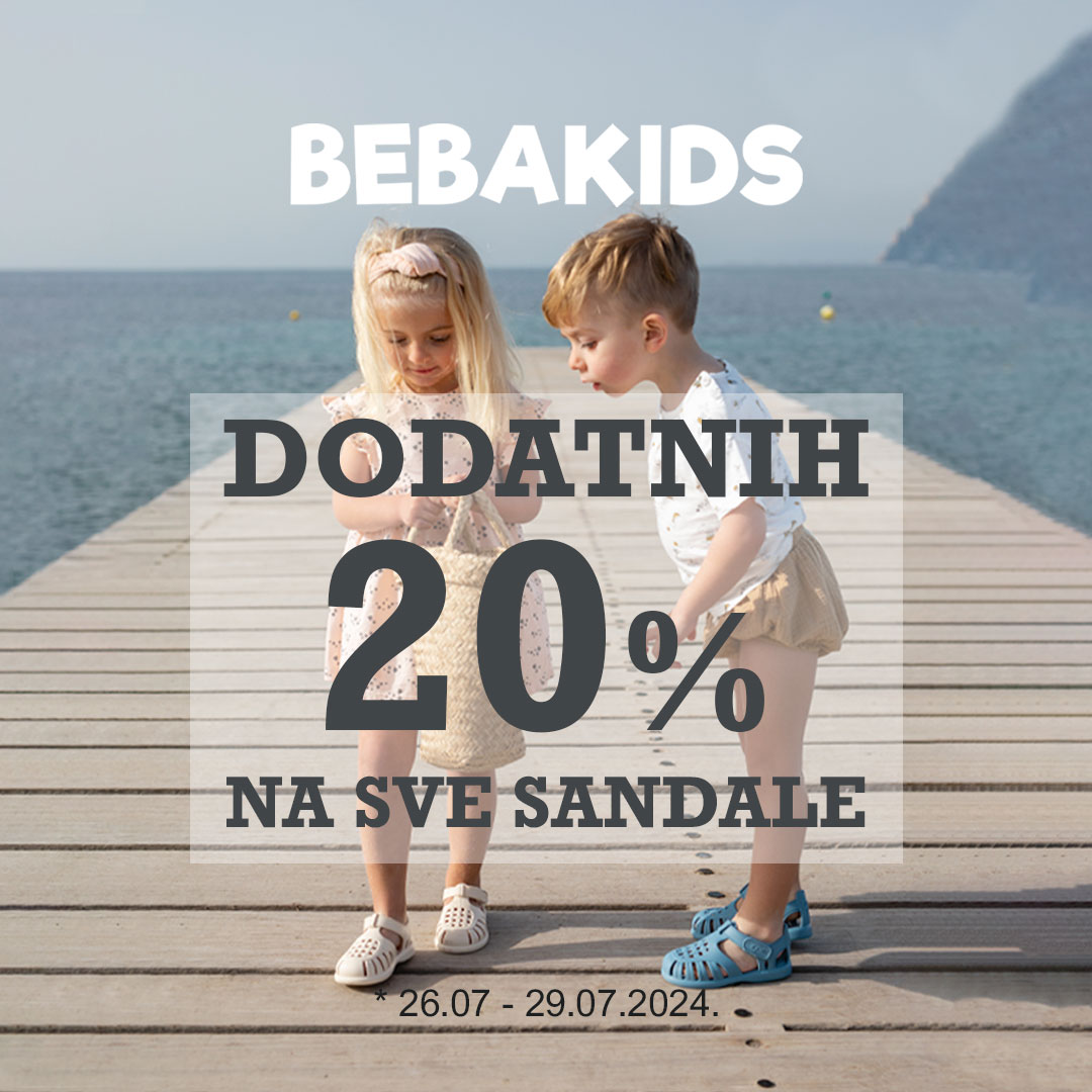 Iskoristite dodatnih 20% popusta na sve sandale u BEBAKIDS radnji od 26.07. do 29.07.2024.