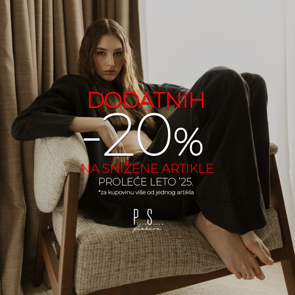 Sjajna vest za sve ljubitelje dobrog stila – od 24. do 31. jula, očekuje vas dodatnih 20% popusta na označen deo kolekcije proleće leto ‘25!