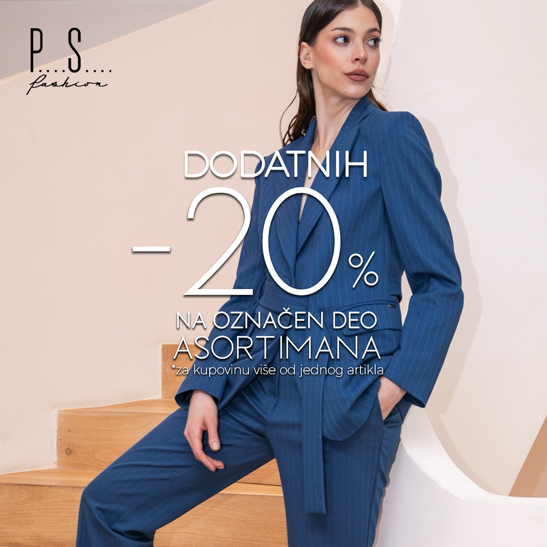 Dodatnih 20% popusta na označen dio asortimana! Od 10. do 12. juna imate mogućnost da ostvarite dodatnih 20% popusta na selektovane modele sa međusezonske ponude.