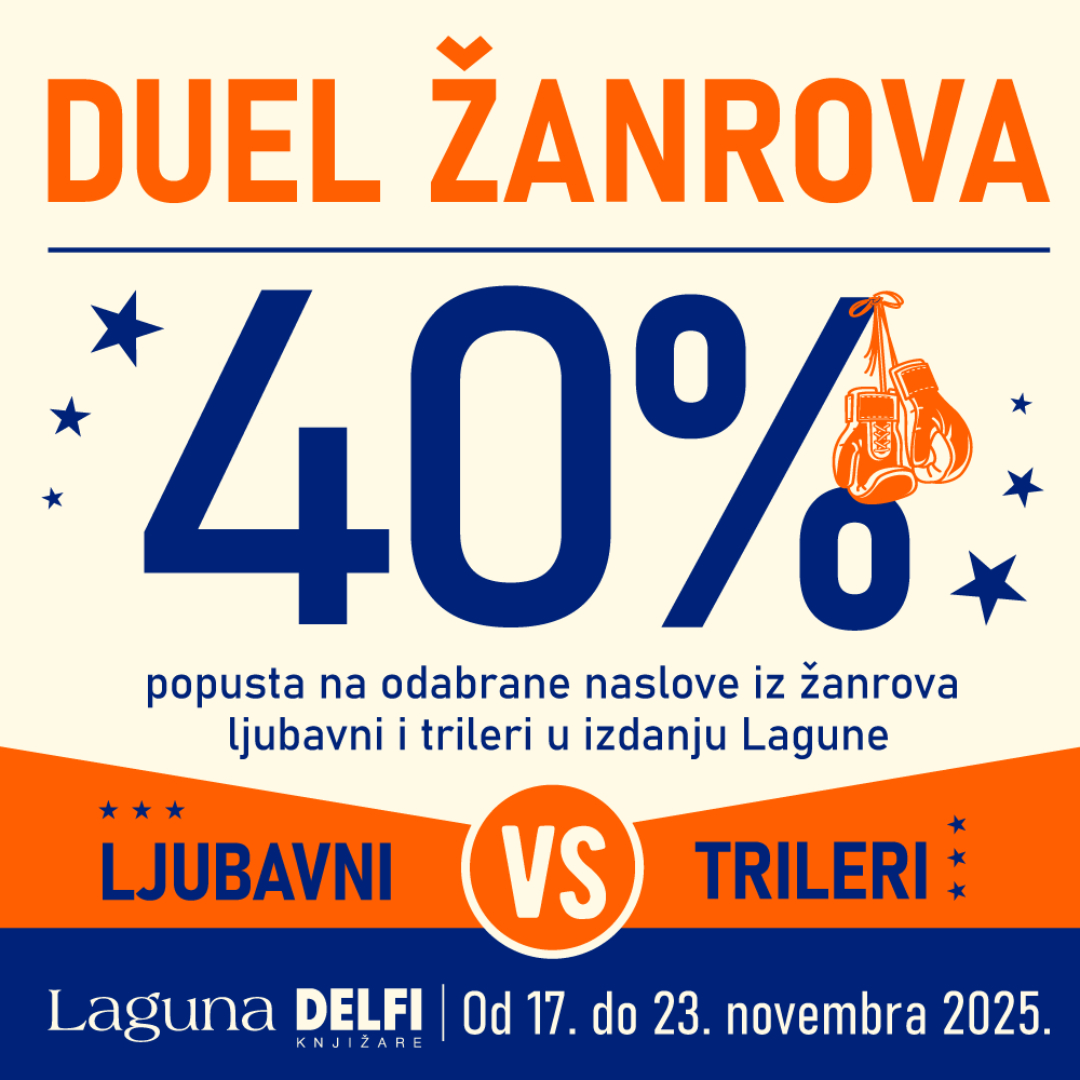 Na odabrane triler i ljubavne romane u izdanju Lagune važi popust od 40% u Delfi knjižari od 17. do 23. novembra 2025.