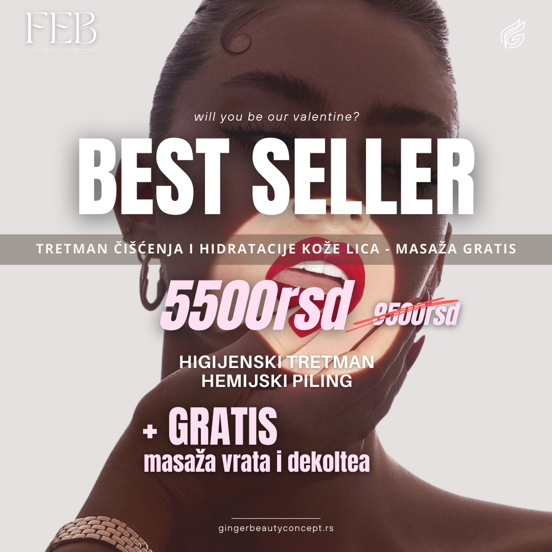 ▫️BEST SELLER – Dobre stvari ne treba menjati, a svi smo se već tokom januara zaljubili u ovaj paket! 😍 Paket BestSeller obuhvata Higijenski tretman lica u kombinaciji sa Hemijskim pilingom (po izboru prema tipu i potrebama kože) + gratis MASAŽU vrata i dekoltea 🎁
