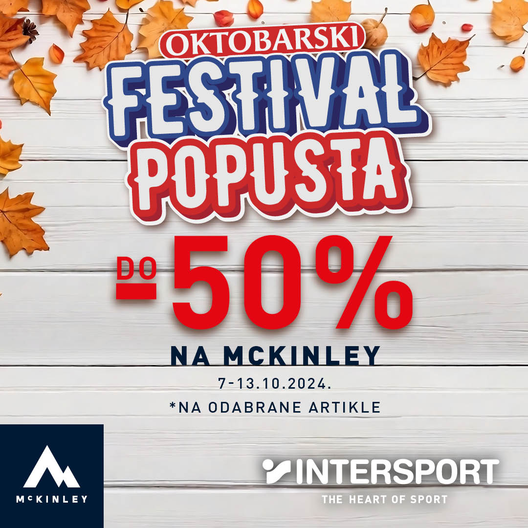 Iskoristite do -50% popusta na odabrane McKinley artikle samo u Intersportu tokom oktobarskog festivala popusta. Bez obzira da li planirate boravak na otvorenom ili šetnju gradom, McKinley nudi komfor i zaštitu za sve prilike. Od odeće do obuće, ovaj ekskluzivni brend iz Intersporta garantuje kvalitet 👌🏻 u svakom koraku, bez obzira na vremenske uslove. 🌦️