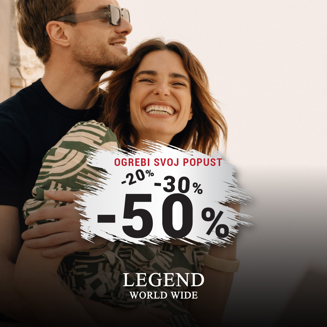 Poseti Legend World Wide maloprodaju, jer svakog kupca na kasi očekuje greb greb kartica sa popustom iznenađenja od -20%, -30% ili -50%!