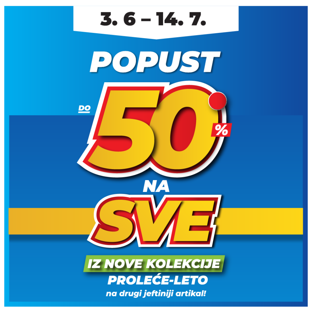 Očekuje te do 50% popusta na SVE iz nove kolekcije proleće/leto, na drugi jeftiniji artikal.