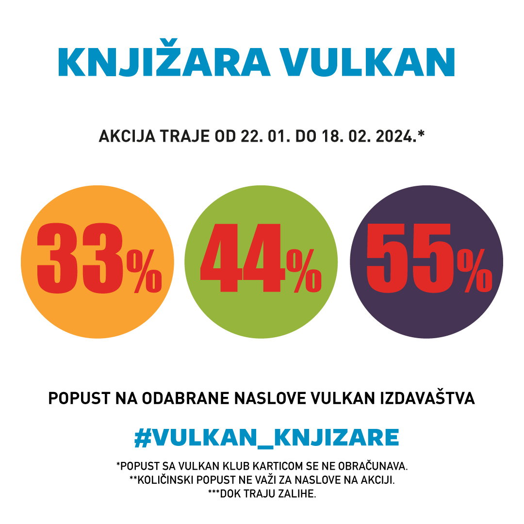 Obnovi svoju čitalačku listu, iskoristi sjajnu akciju u Vulkan knjižari: 33%, 44% i 55% popusta na odabrane naslove do 18. februara!