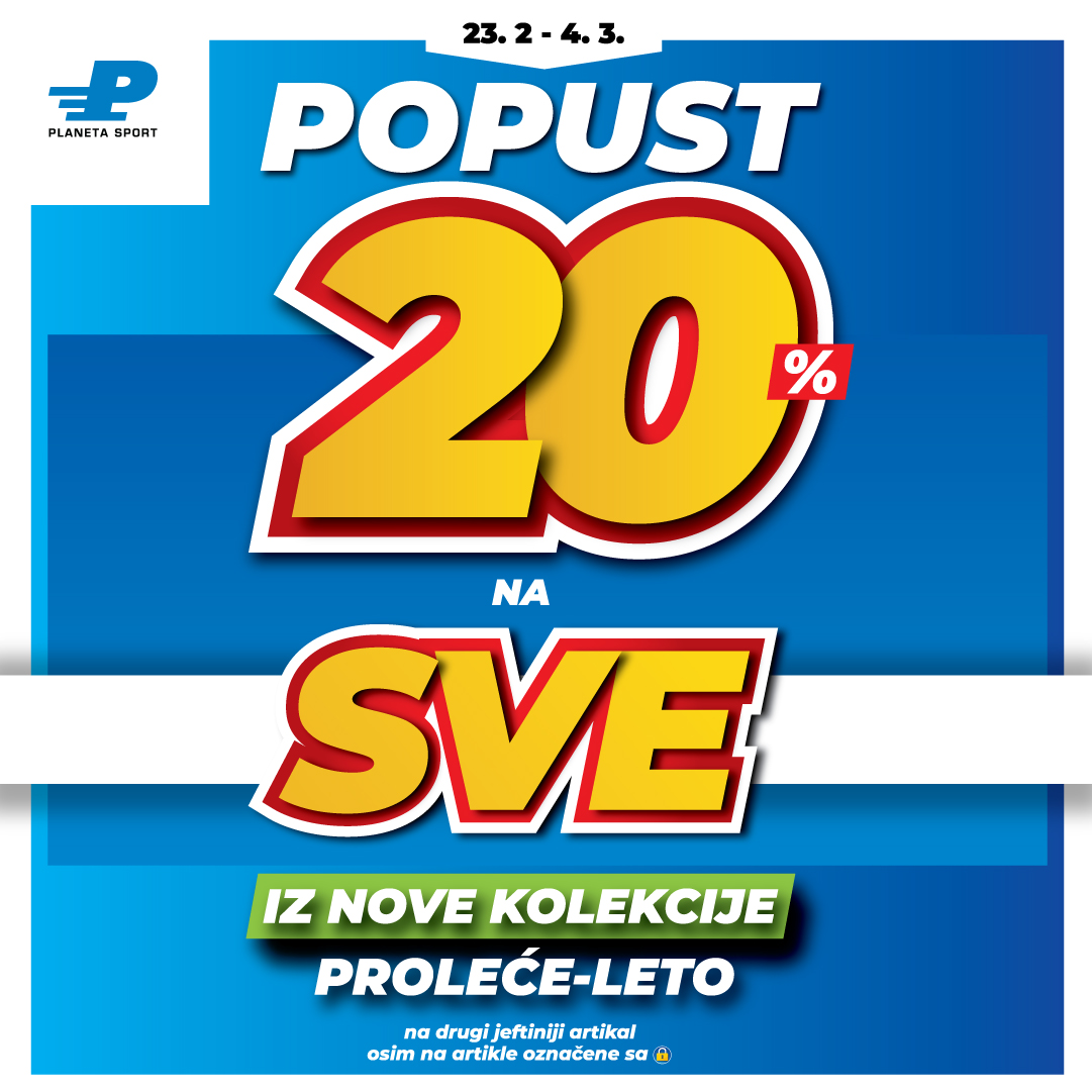 Iskoristi 20% popusta na kompletnu novu kolekciju proleće/leto, na drugi jeftiniji artikal, samo u u Planeta Sport prodavnici, SC Stadion, nivo 1!🤩