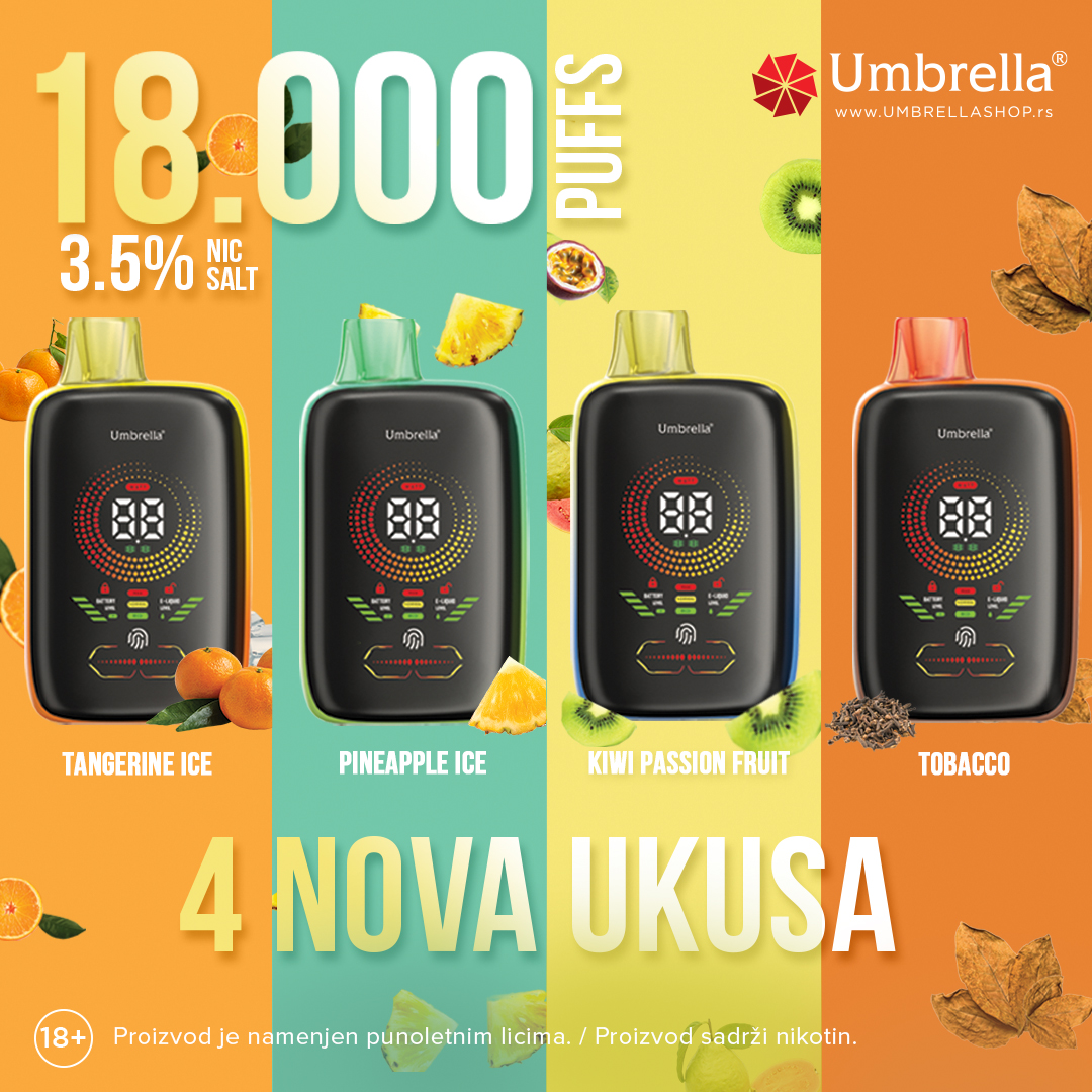 U Umbrella šopu dostupni su potpuno novi ukusi modela 18000 puffs i to u jačini 3,5 NicSalt.