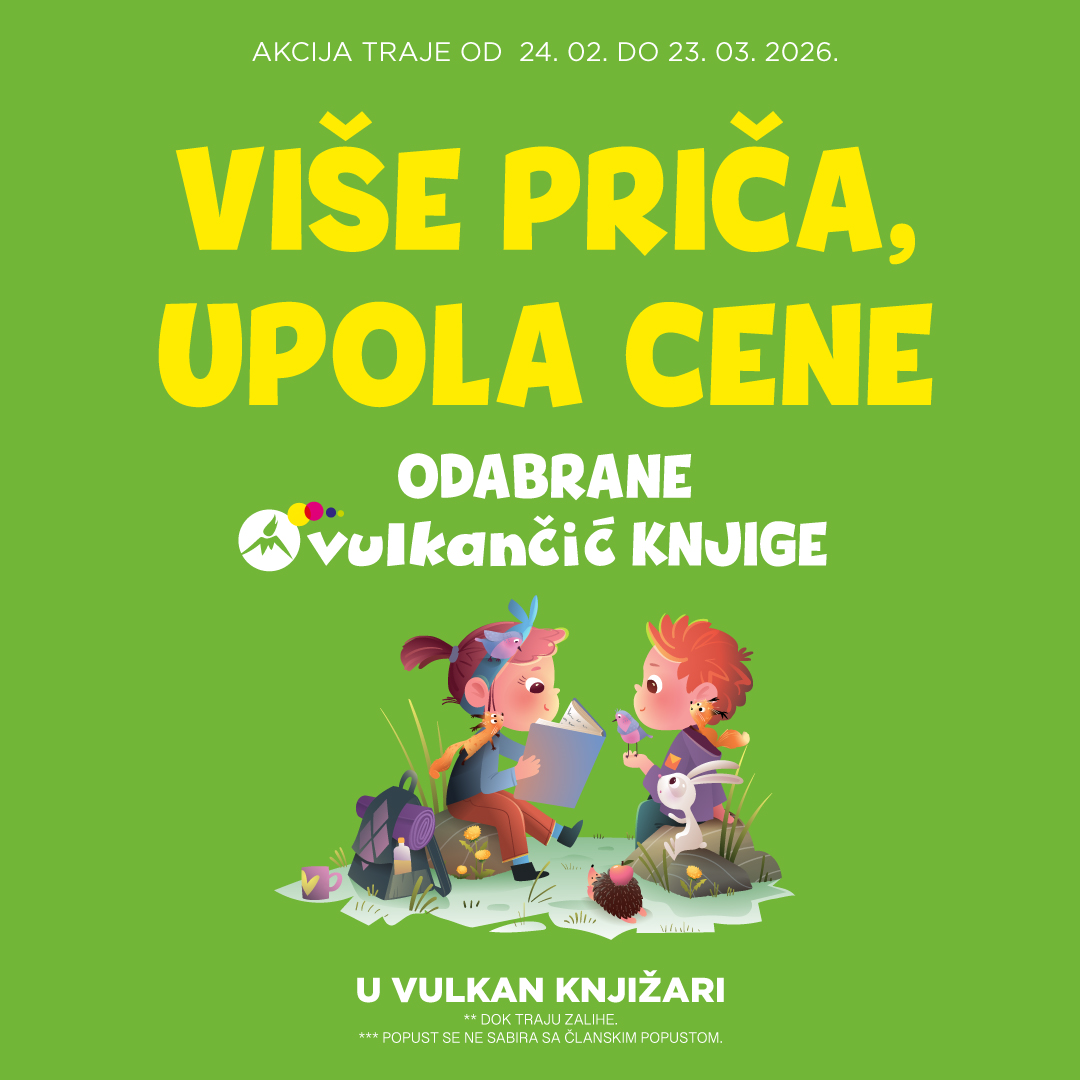 Više informacija o akciji možete pronaći na ovom linku: https://www.knjizare-vulkan.rs/domace-knjige/upola-cene-knjige-za-decu/