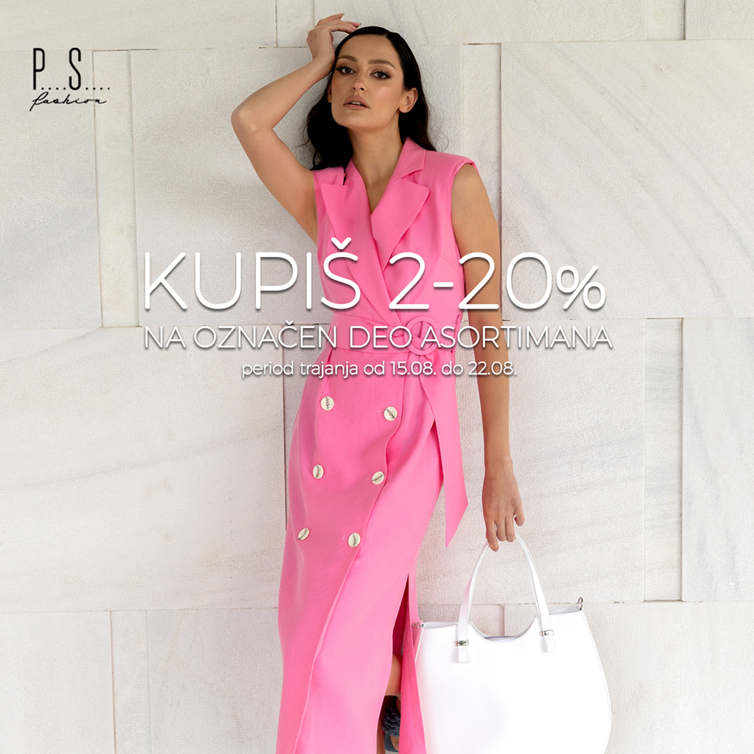 Od 15. do 22. avgusta imate mogućnost da ostvarite dodatnih 20% popusta na označene modele iz kolekcije proleće leto.