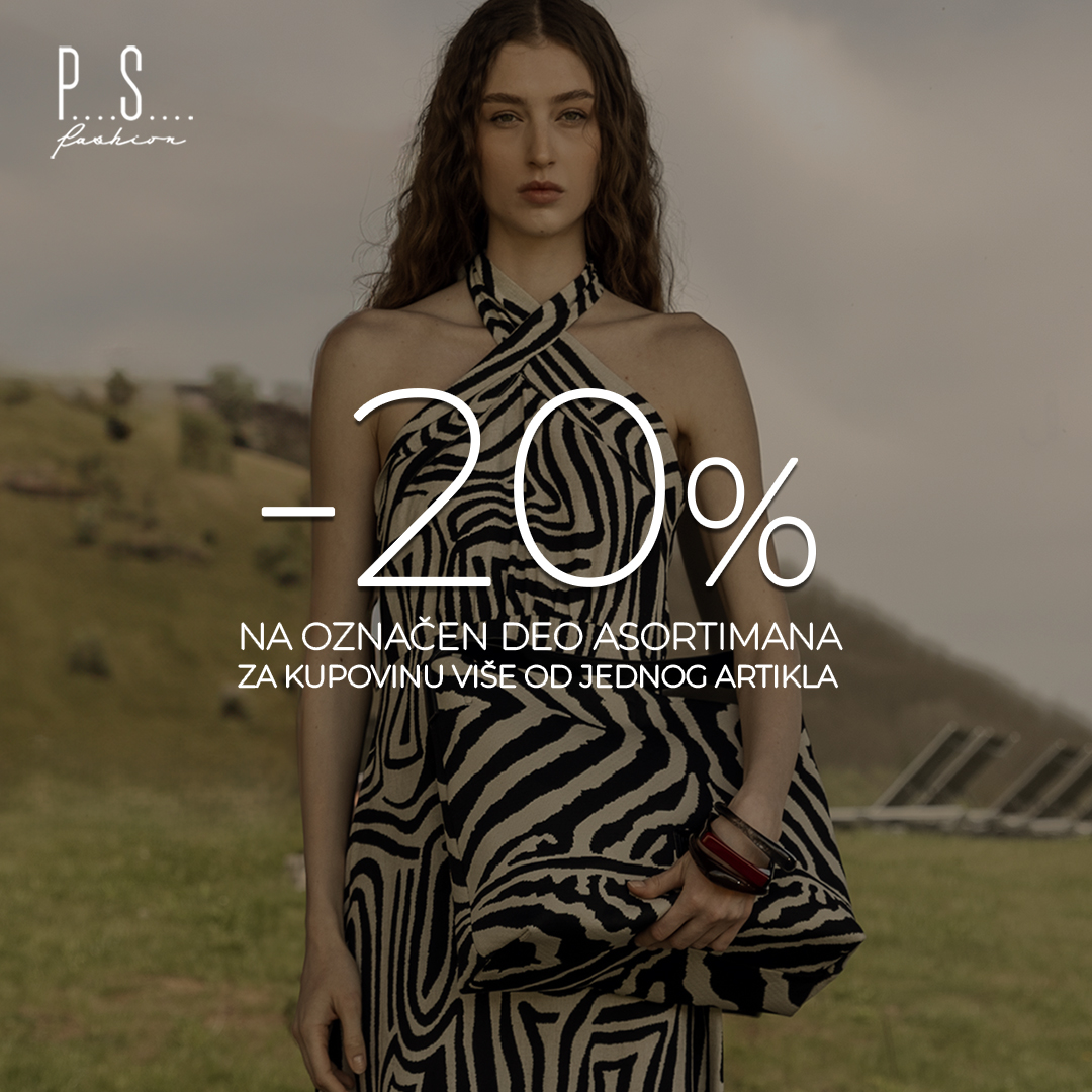 U periodu od 01. do 10. septembra uživajte u 20% popusta na sve modele iz kolekcije proleće leto i izdvojene komade iz jesenje kolekcije.