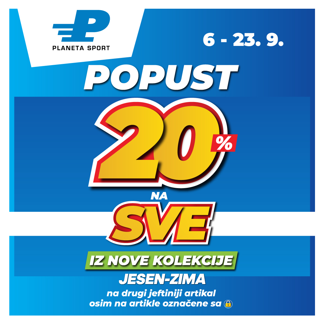 Poseti Planeta Sport prodavnicu i iskoristi sjajnih 20% na sve iz nove kolekcije jesen/zima, na drugi jeftiniji artikal.🔝