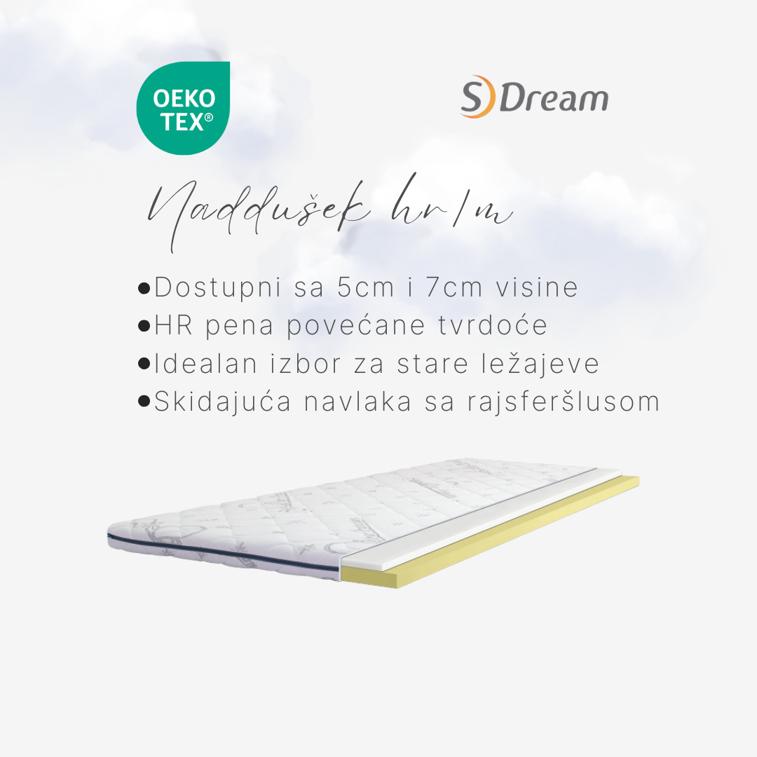 ✨ Naddušek HR/M 5 i 7 – HR pena prilagođava se vašem telu, pružajući optimalan balans udobnosti i podrške za osobe do 90 kg.