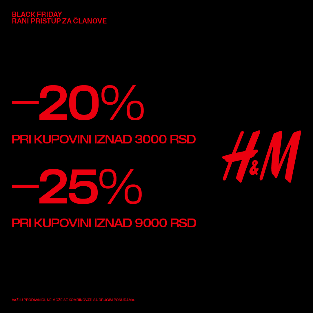 Vreme je omiljene popuste u toku godine! U našoj prodavnici te očekuje sjajan izbor – požuri i uživaj u ponudi do 29.11! #HM