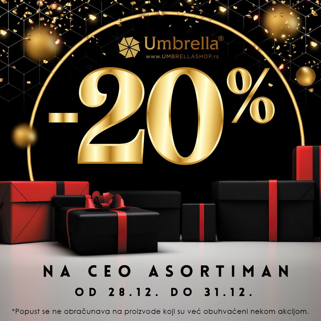 U toku je praznična ponuda u Umbrella shopu, -20% na kompletan asortiman osim na proizvode koji su već obuhvaćeni nekom akcijom.