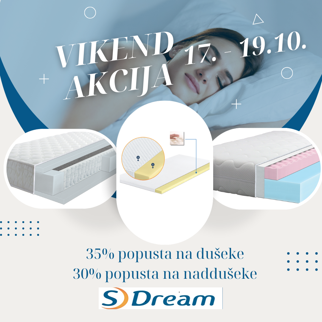 Vikend akcija u našoj maloprodaji 17.-19.10. ⏱️ Posetite nas na dobro poznatoj lokaciji u Stadionu i iskoristite 35% popusta na dušeke i 30% popusta na naddušeke koji nisu sniženi u okviru naše standardne oktobarske akcije.