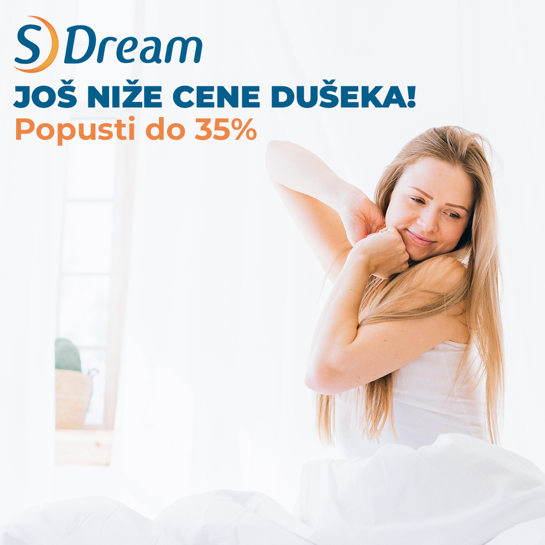 Na sve dušeke koji nisu na sniženju 35%,nadušeke 30% ostali asortiman S dream 35%.