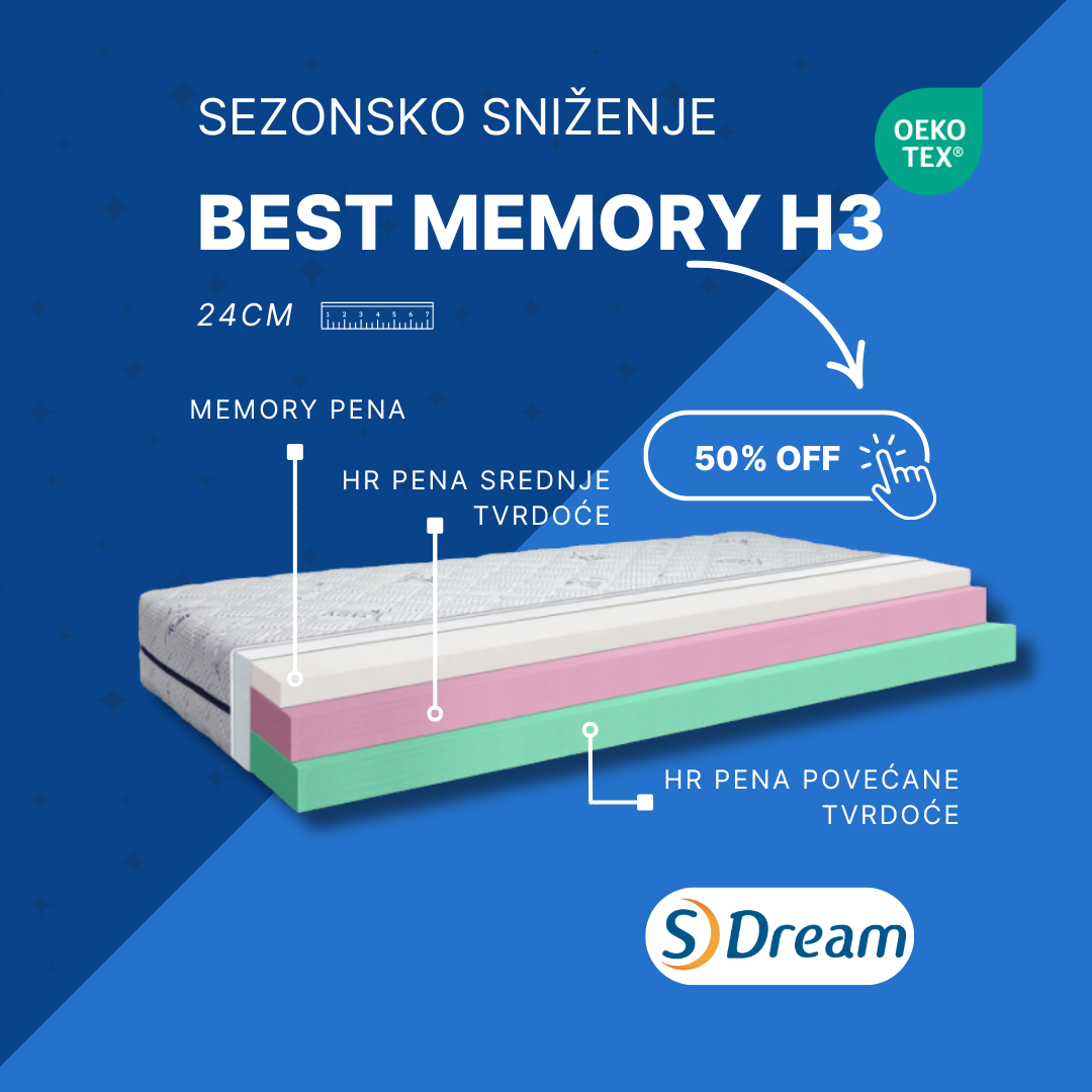 50% POPUSTA na Best Memory H3 dušek – kreiran za energične ljude koji ne pristaju na manje od savršenog sna.