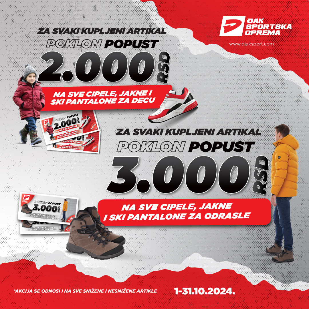 Đak poklanja popust od 3000 RSD na sve cipele, jakne i ski pantalone za odrasle!