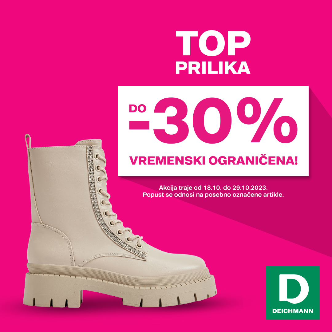 Akcija Top prilika u Deichmannu donosi sniženje do 30% na odabrane modele obuće.