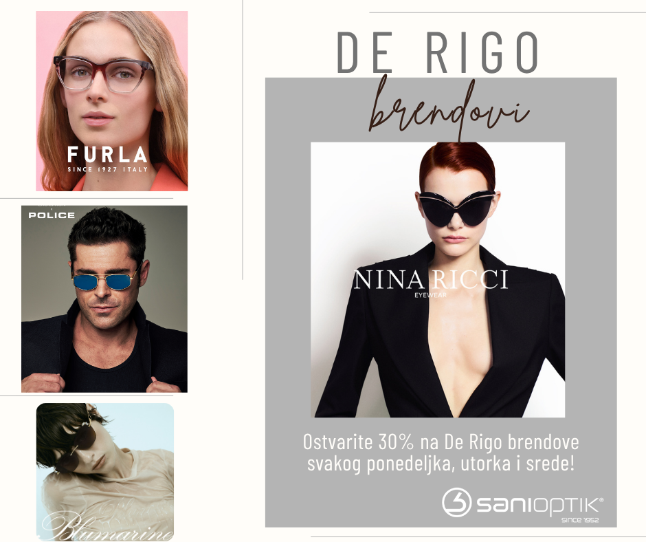 Samo ponedeljkom, utorkom i sredom u Sani Optik, čeka te 30% popusta na vrhunske De Rigo brendove: