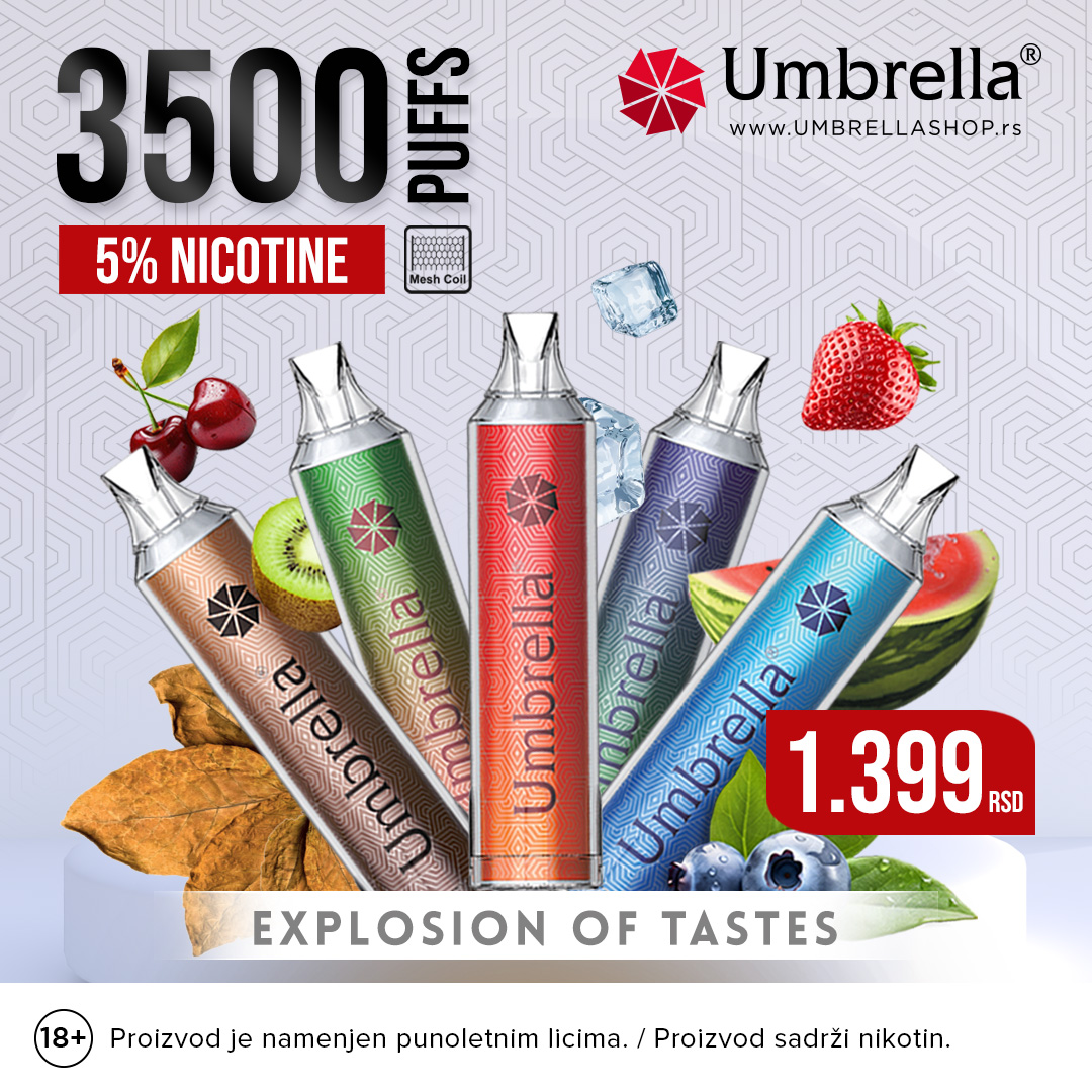 Najnovije modele vape uređaja, tečnosti i arome poznatih svetskih brendova, kao i prateću opremu pronađite na Umbrella štandu, nivo 0!
