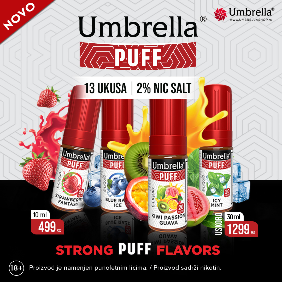 Posle mnogo iščekivanja – NOVO NA TRŽIŠTU – Linija tečnosti UMBRELLA PUFF, arome identične kao u jednokratnim vejpovima!