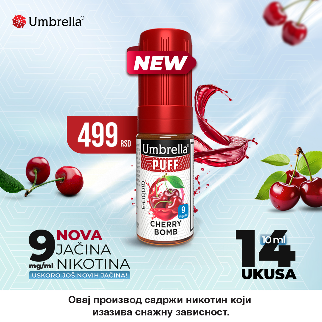 Umbrella PUFF linija e-tečnosti dostupna je u novoj jačini nikotina 9mg/ml.