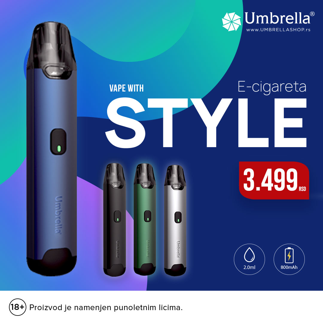 Umbrella STYLE je elegantan POD model e-cigarete malih dimenzija.