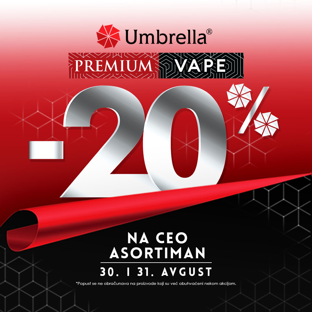 Tokom 30. i 31. avgusta u Umbrella shopu odobren je popust od 20% na kompletan asortiman.
