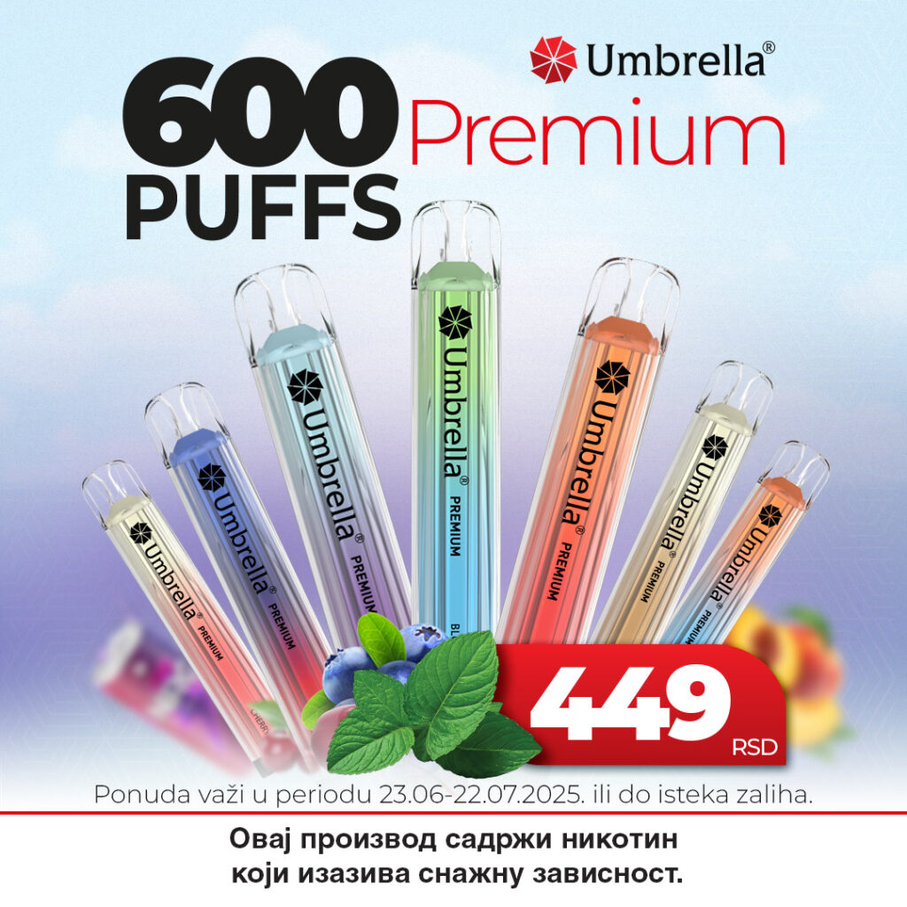 U okviru našeg tržnog centra na Umbrella štandu možete pronaći model 600 PUFFS PREMIUM