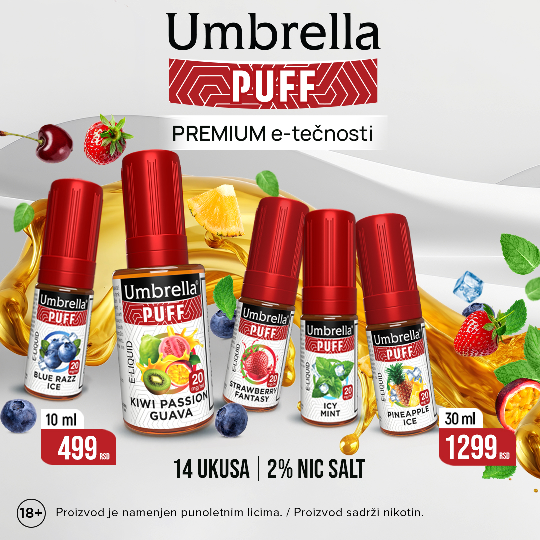 UMBRELLA PUFF E-TEČNOSTI – intenzivne arome kao u jednokratnim elektronskim cigaretama!